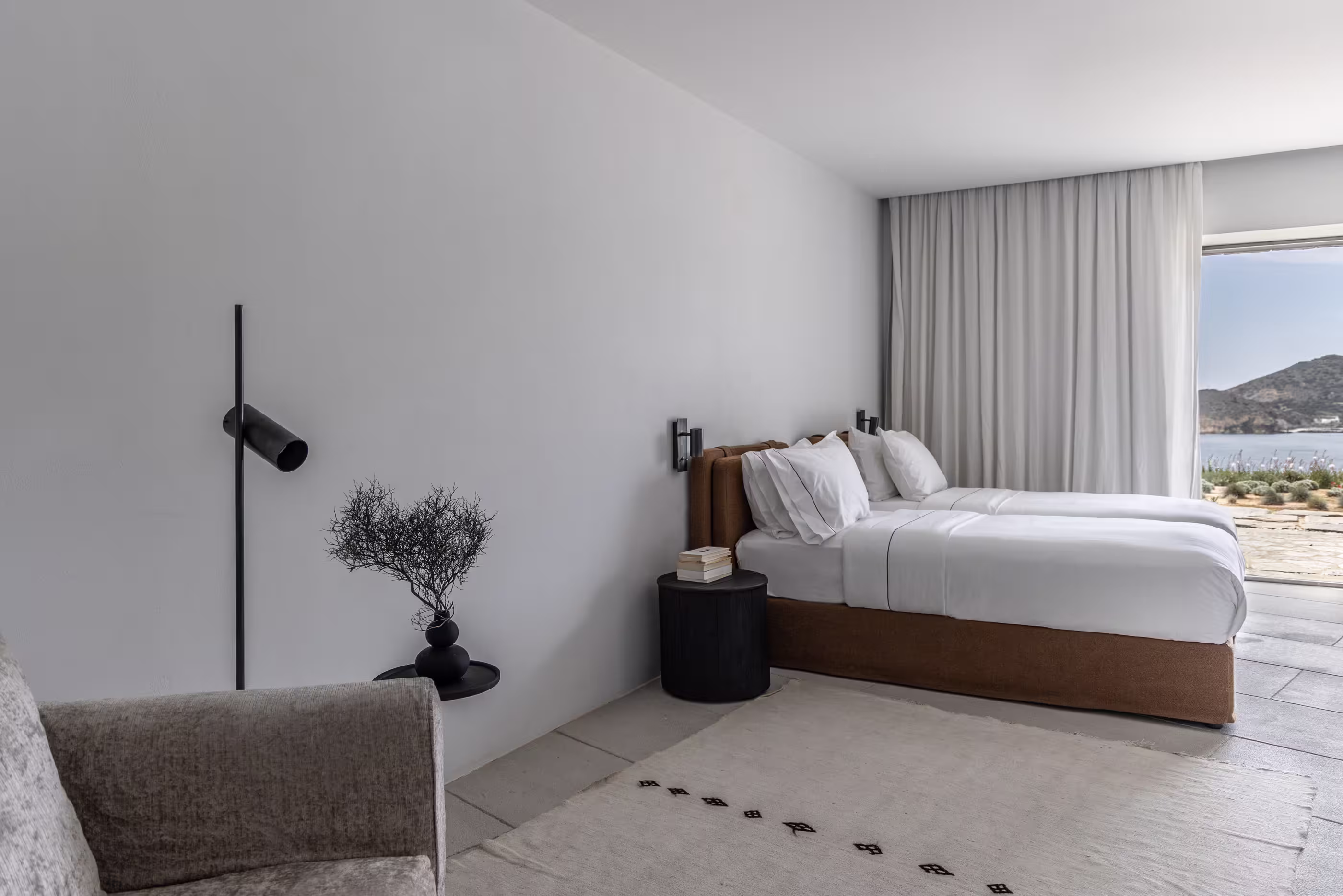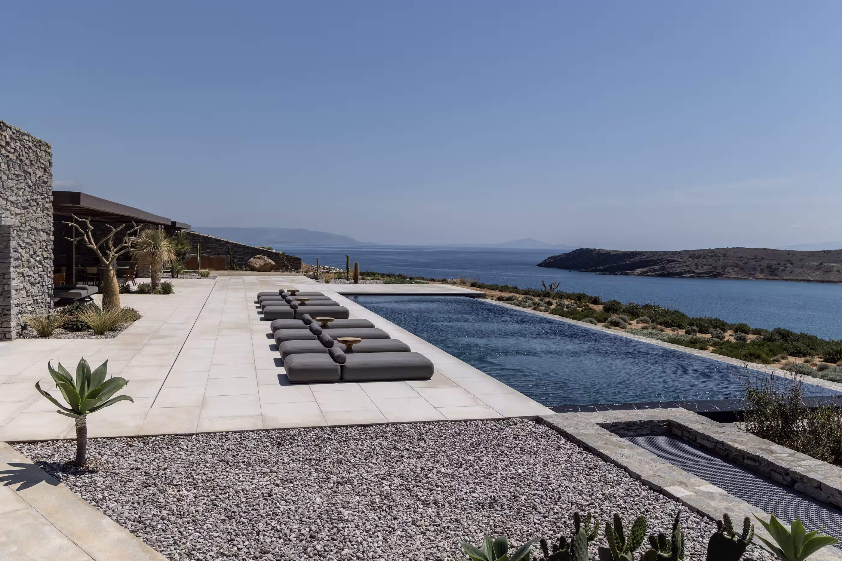 - Landscaped gardens and wide terraces overlooking Molos Bay