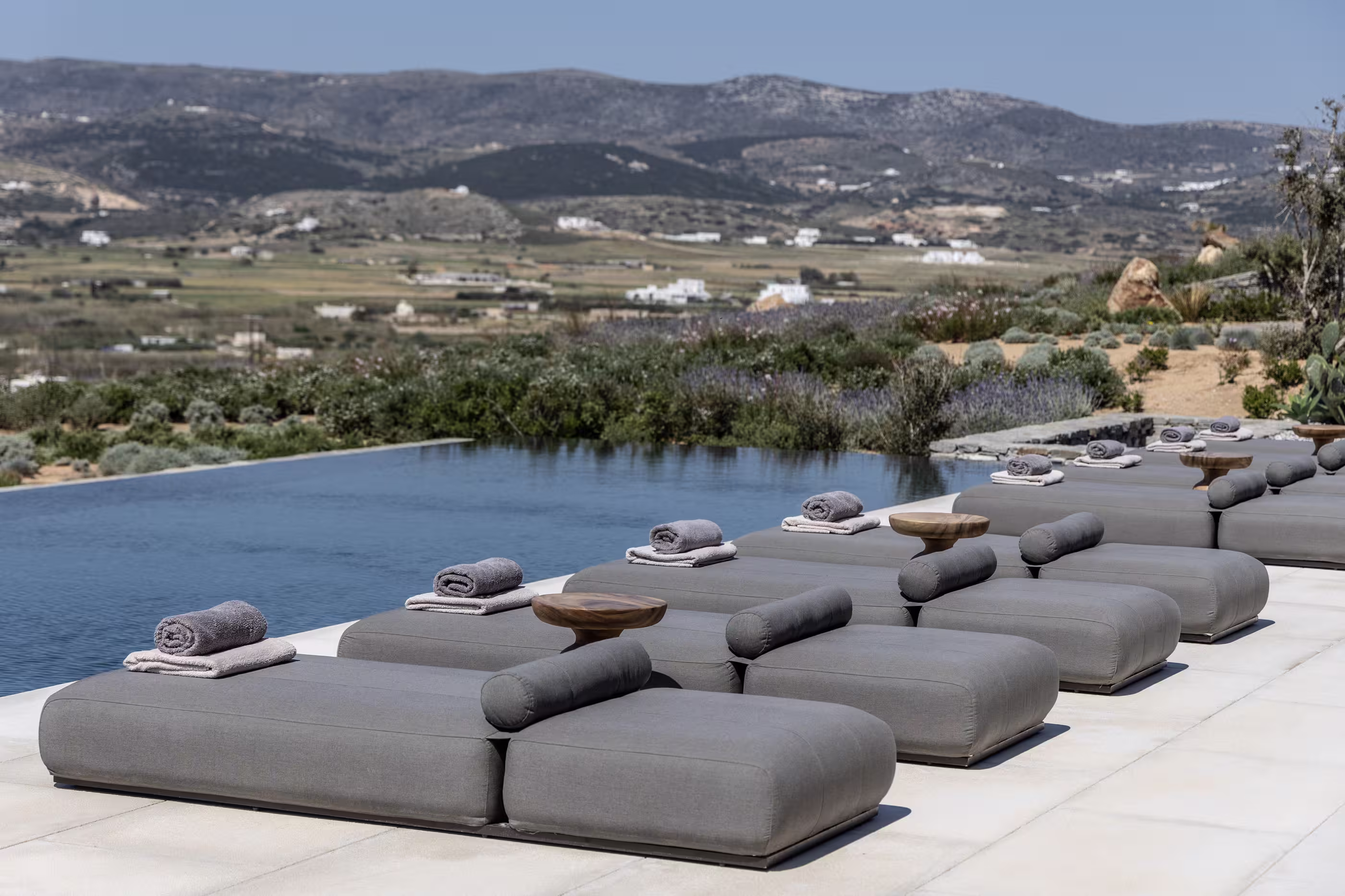 - Sunbeds, umbrellas, and multiple seating corners for relaxing