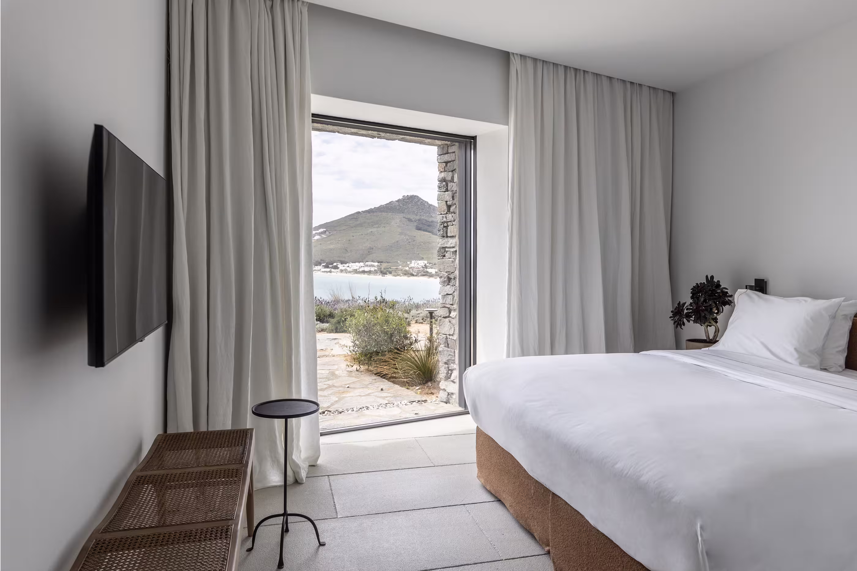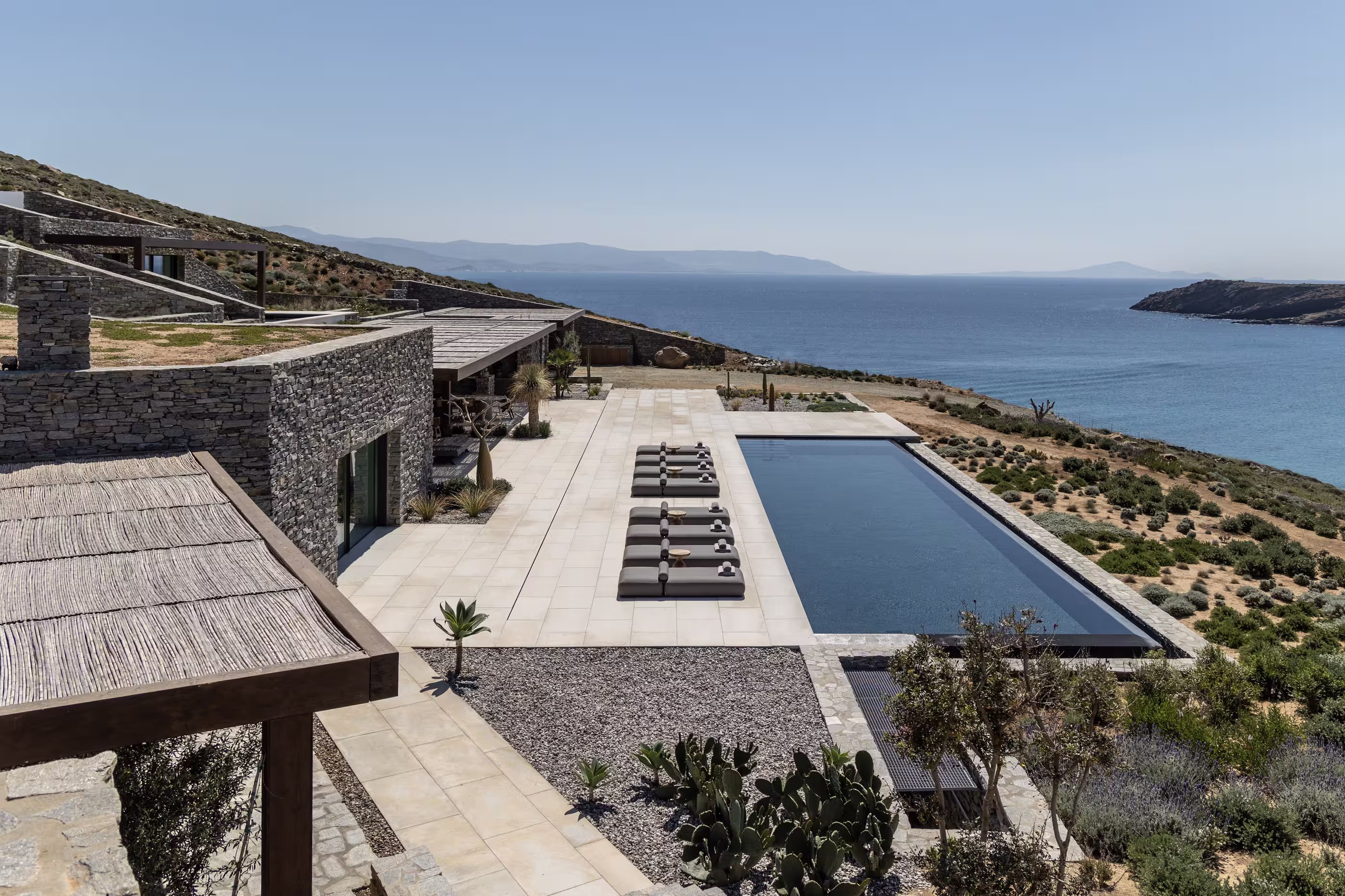 Villa Calma is an impressive 832 sqm property set on a private 8,600 sqm estate in the peaceful Molos area of Paros. With six refined en-suite bedrooms, panoramic Aegean Sea views, and generous indoor–outdoor living spaces, it offers a beautiful setting for families, groups, or special celebrations. Spread across two levels, the villa features a bright open-plan living room, a dining area for up to 20 guests, and a fully equipped professional kitchen perfect for shared meals or private chef experiences. Outside, guests can enjoy two infinity pools, shaded lounges, a BBQ area, and landscaped terraces. Within walking distance of a sandy beach and a charming whitewashed chapel, Villa Calma promises a relaxing and memorable island escape.