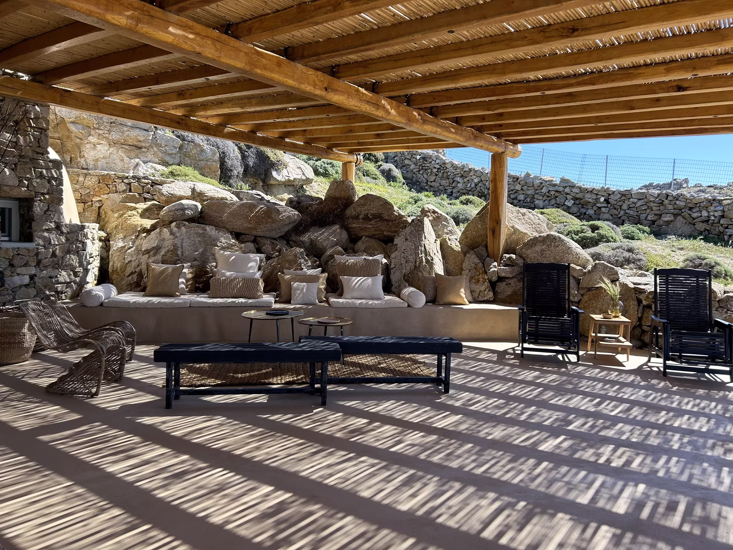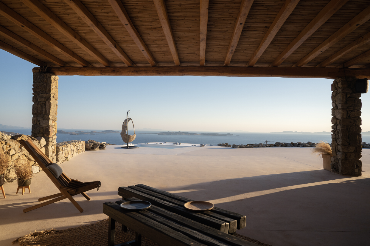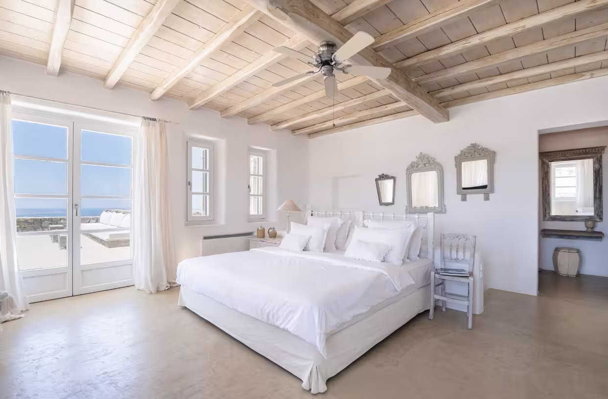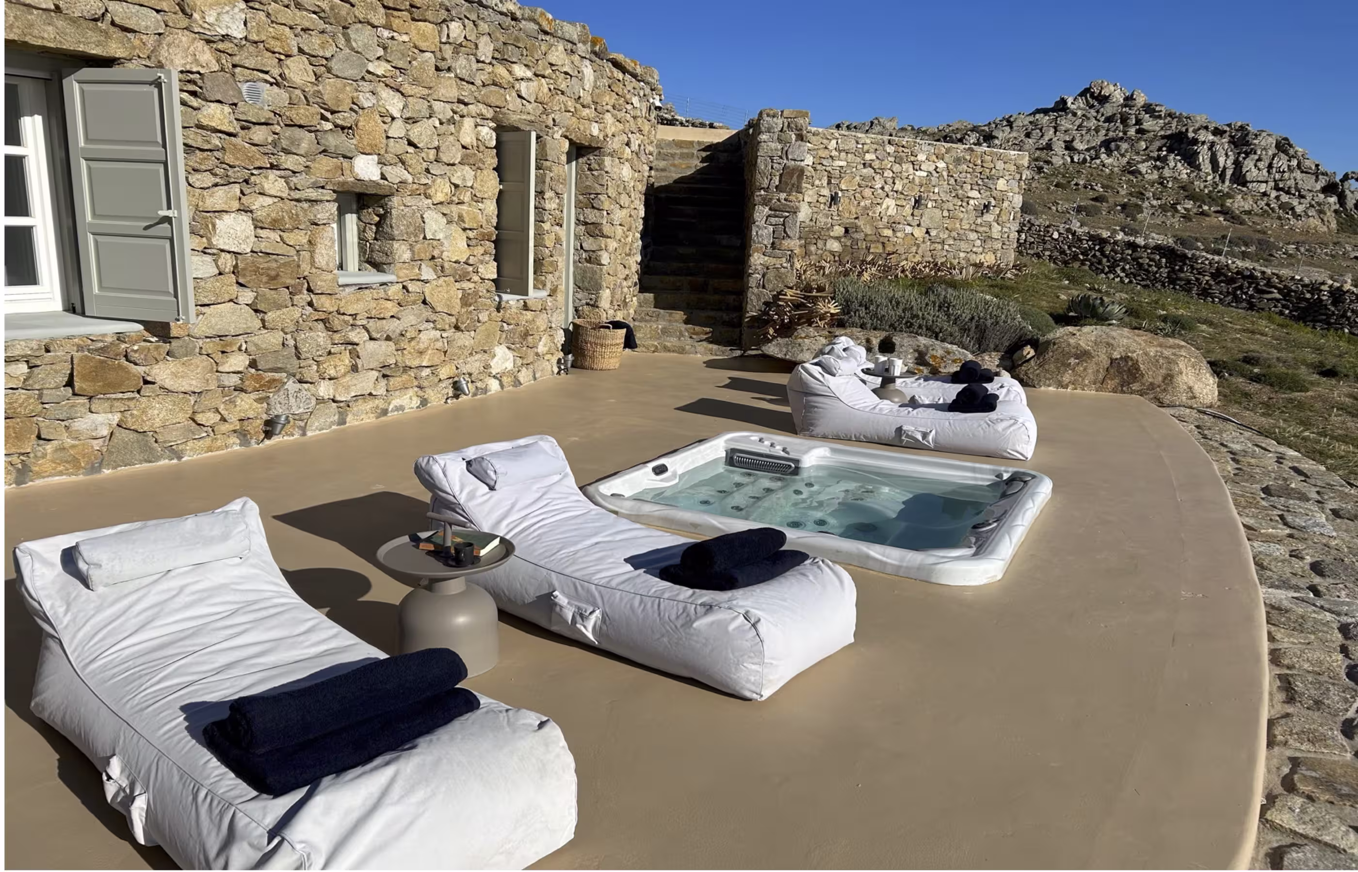 Villa Onda rests in the quiet hills of Kastro, surrounded by open sky and sweeping views of Mykonos Town, Delos, Rhenia, and the deep blue Aegean. Designed across three levels, the villa offers seven en-suite bedrooms, two private pools, a jacuzzi terrace, and generous outdoor living spaces that capture the island’s most striking sunsets. Natural stone, whitewashed walls, and refined interiors create a calm, welcoming atmosphere. With two fully equipped kitchens, spacious lounges, independent entrances, and a grand dining terrace for large gatherings, the villa ensures both comfort and privacy. A serene setting, cinematic views, and modern elegance make villa Onda a standout retreat in Mykonos.
