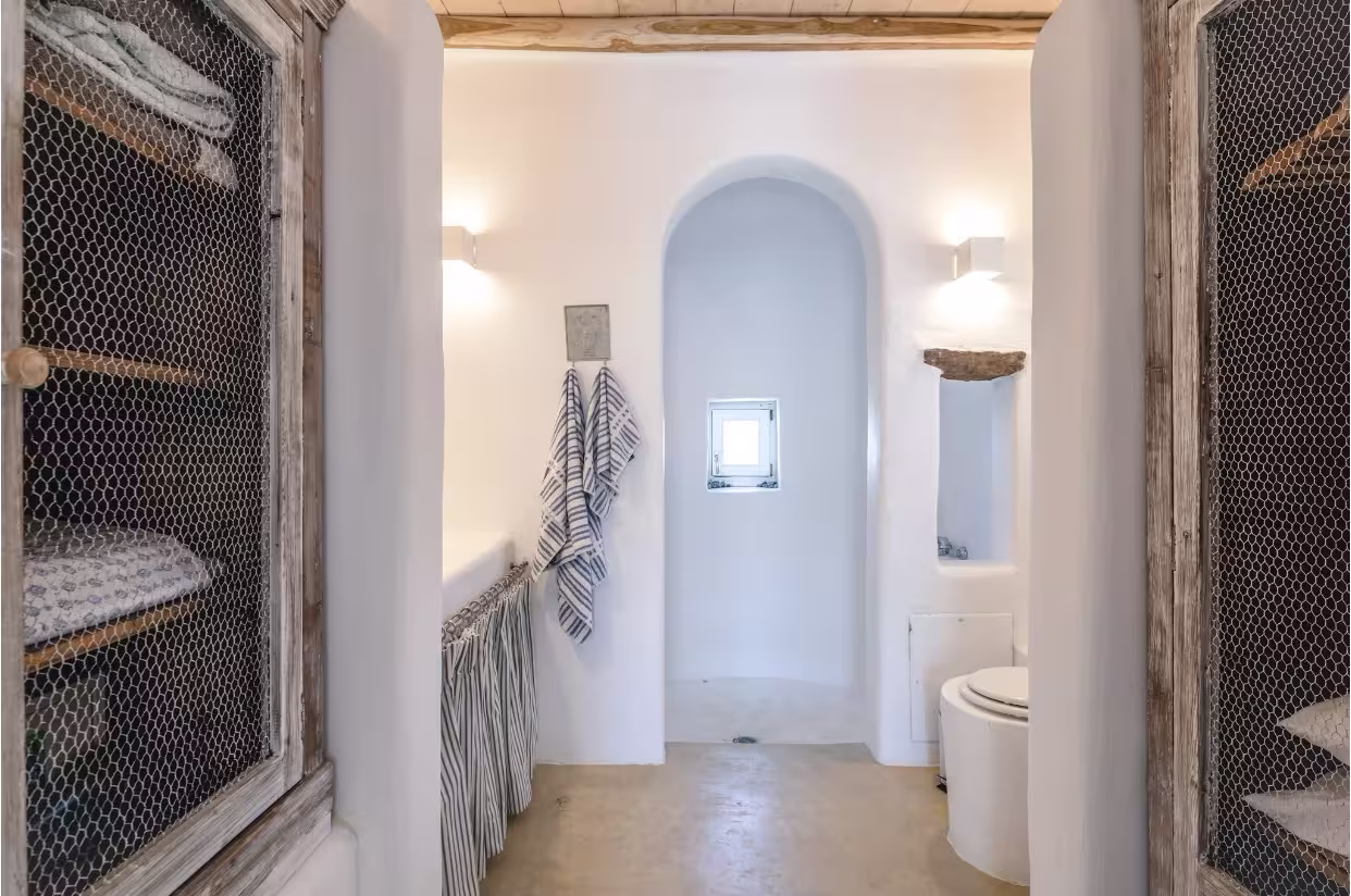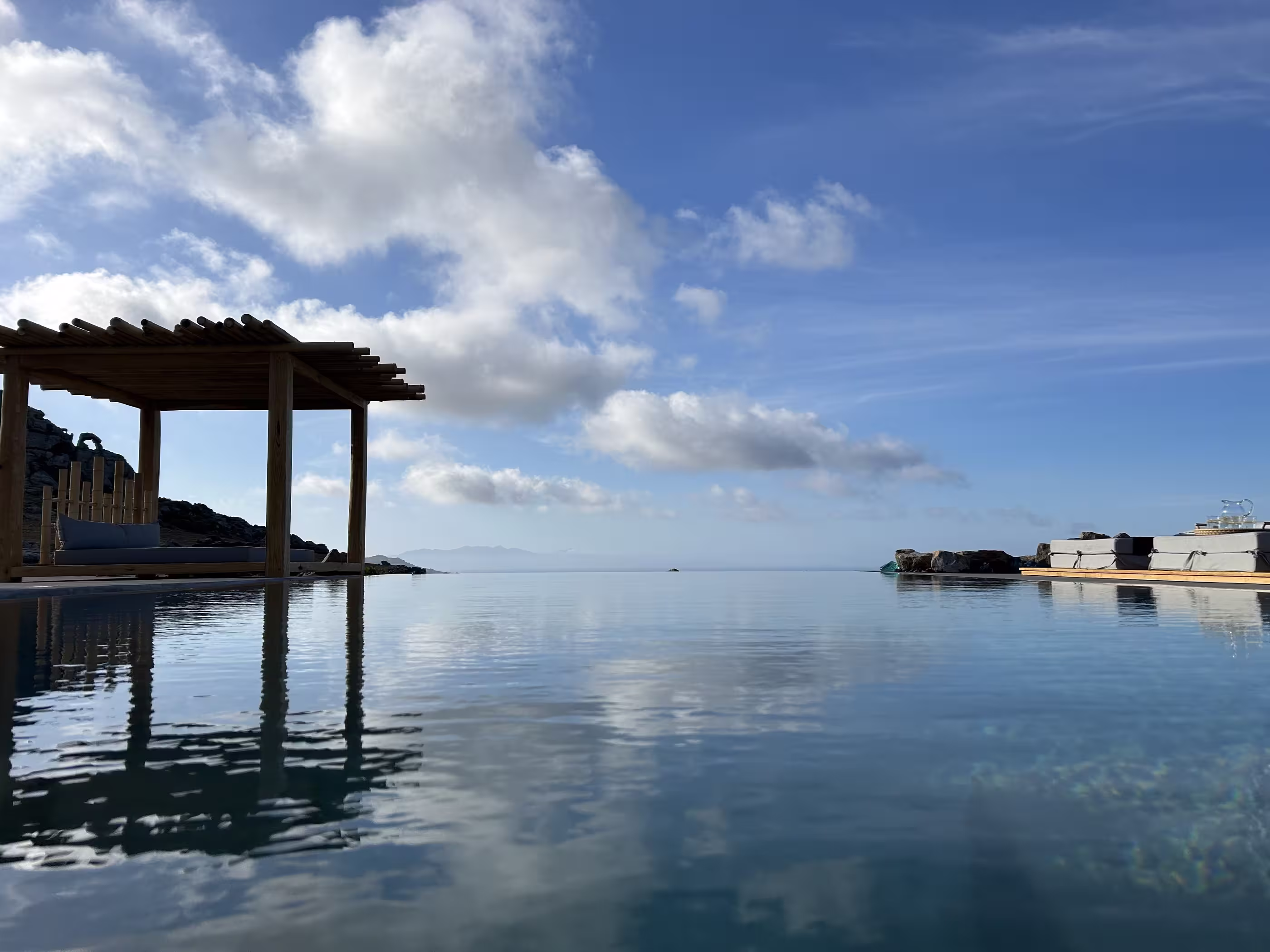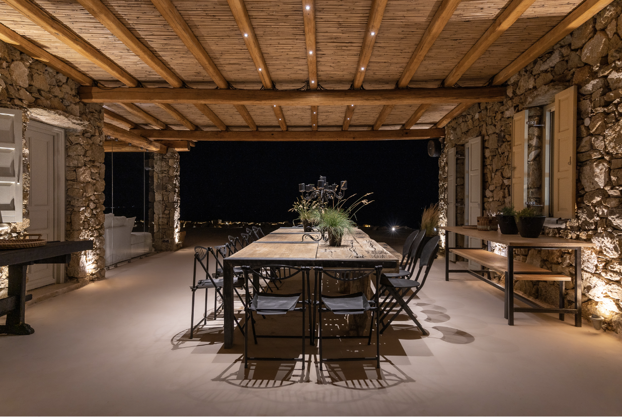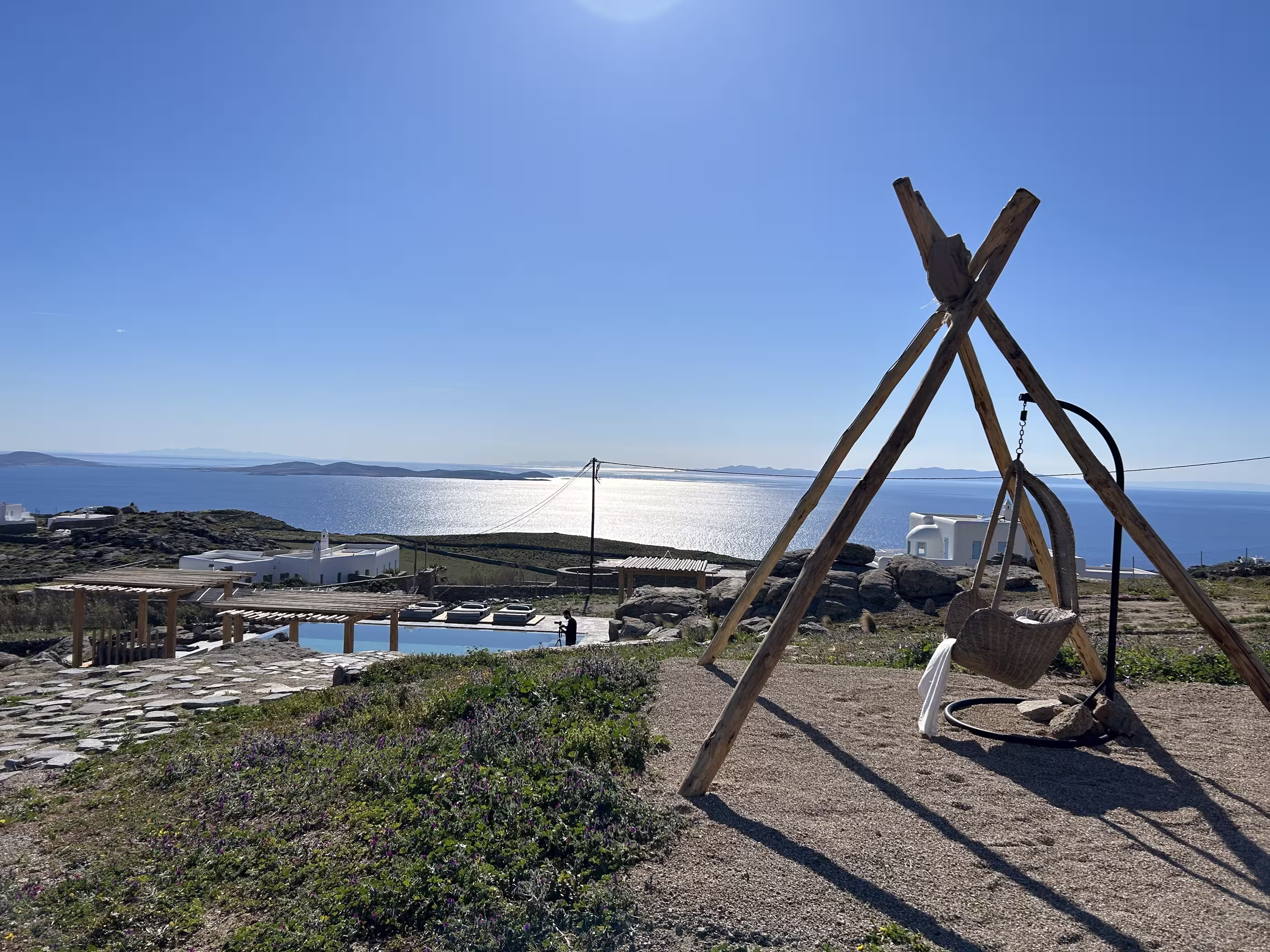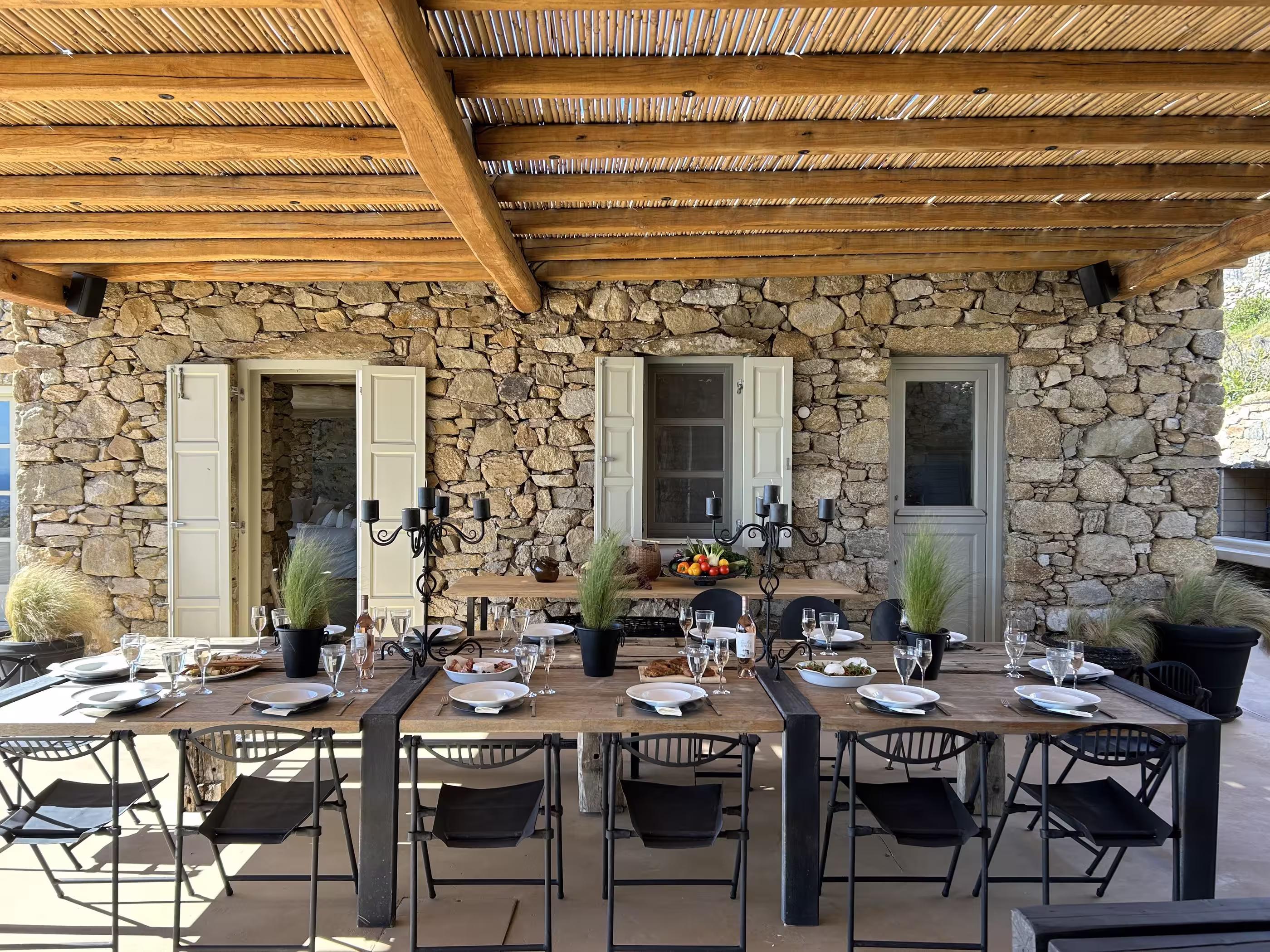 Villa Onda rests in the quiet hills of Kastro, surrounded by open sky and sweeping views of Mykonos Town, Delos, Rhenia, and the deep blue Aegean. Designed across three levels, the villa offers seven en-suite bedrooms, two private pools, a jacuzzi terrace, and generous outdoor living spaces that capture the island’s most striking sunsets. Natural stone, whitewashed walls, and refined interiors create a calm, welcoming atmosphere. With two fully equipped kitchens, spacious lounges, independent entrances, and a grand dining terrace for large gatherings, the villa ensures both comfort and privacy. A serene setting, cinematic views, and modern elegance make villa Onda a standout retreat in Mykonos.