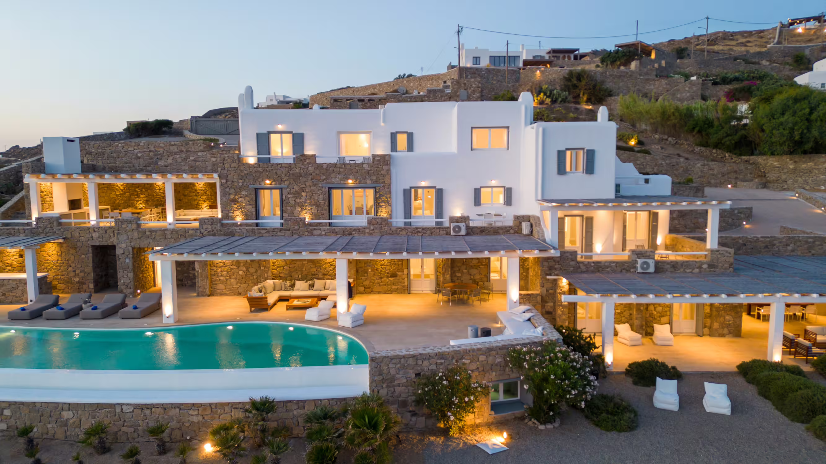Set above the Aegean Sea, Villa Roselia captures the gentle rhythm of Mykonos living. Designed for togetherness and calm, it welcomes up to 18 guests across nine serene en-suite bedrooms. Sunlight fills the open spaces, blending Cycladic charm with soft, contemporary touches. The fully equipped kitchen makes gatherings effortless, while the outdoor terraces invite slow mornings and evenings under the stars. A heated pool mirrors the sea beyond, offering a peaceful spot to unwind. With on-site staff ensuring every detail flows smoothly and the island’s best beaches and restaurants within easy reach, Villa Roselia is where comfort and connection meet the spirit of Mykonos.