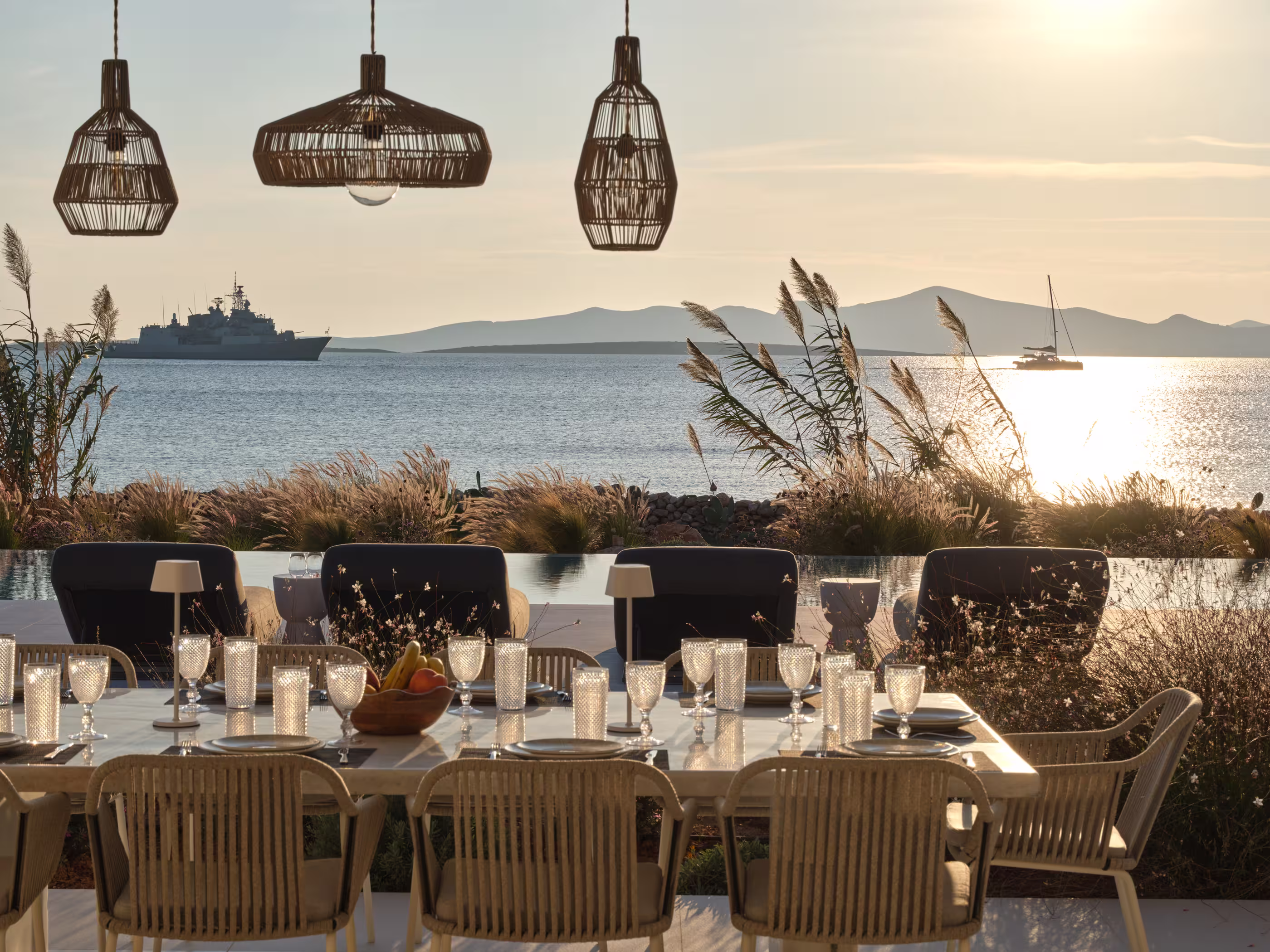 Refined outdoor lounge and dining areas designed for effortless entertaining.