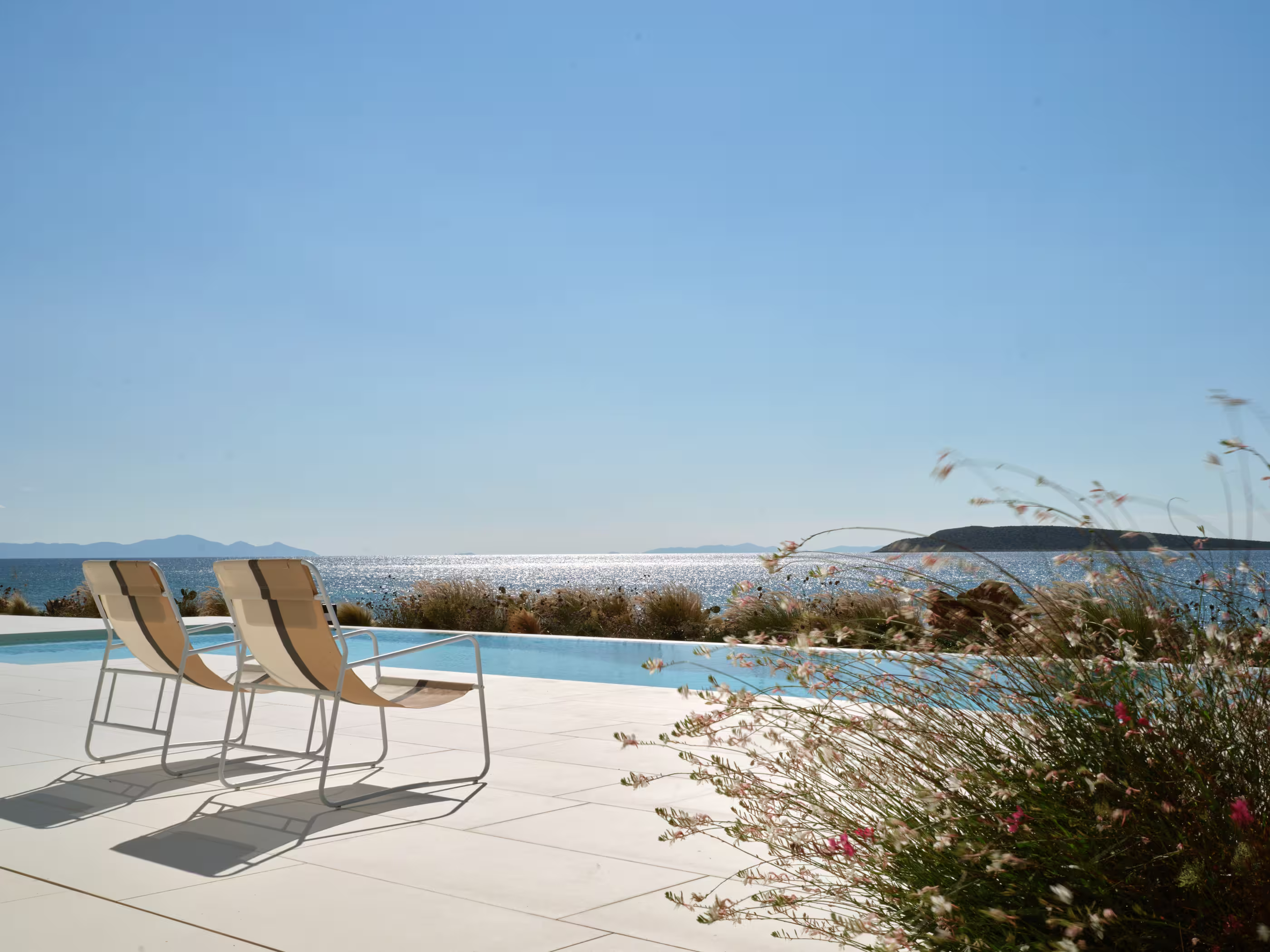 Private swimming pool with uninterrupted sea views.