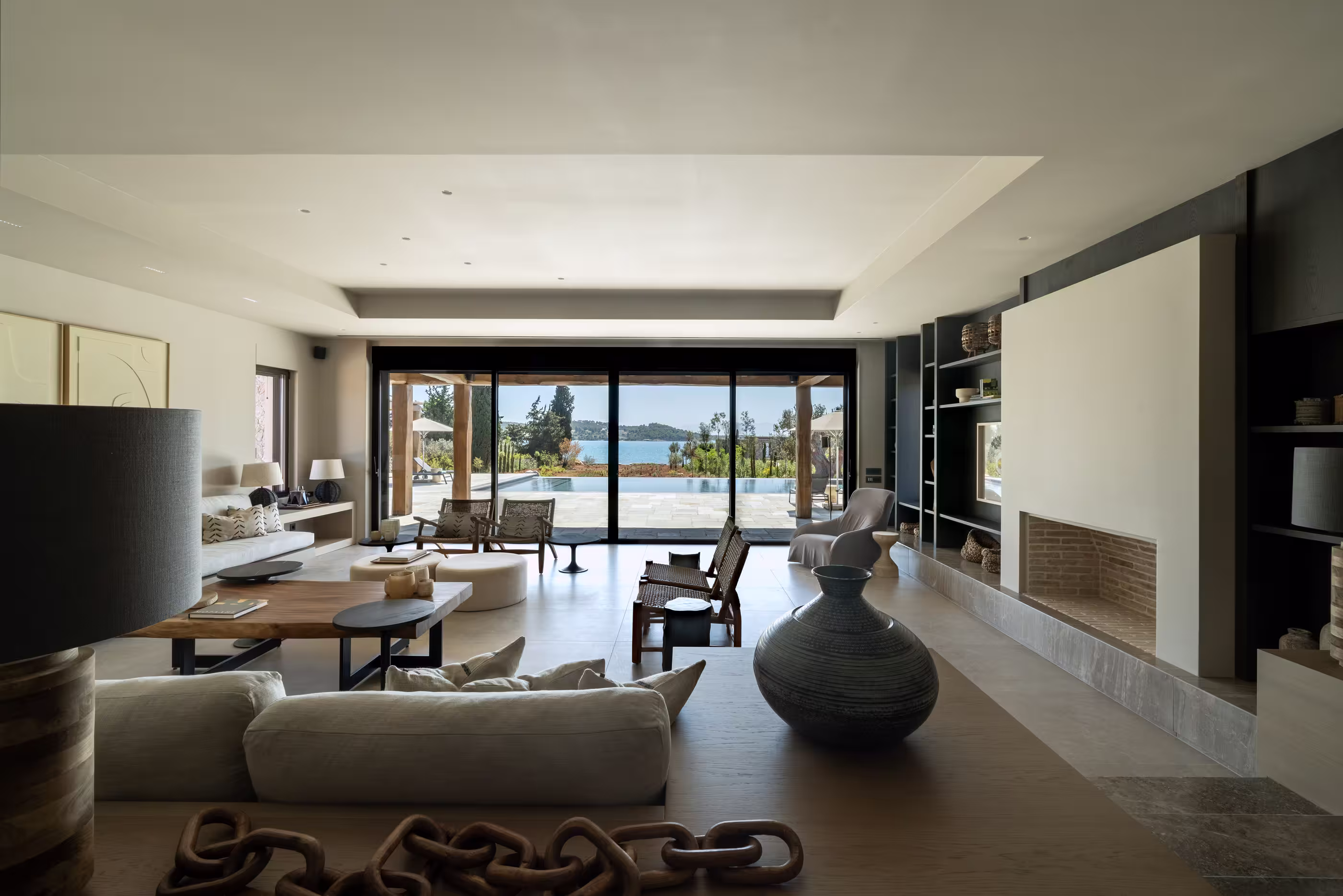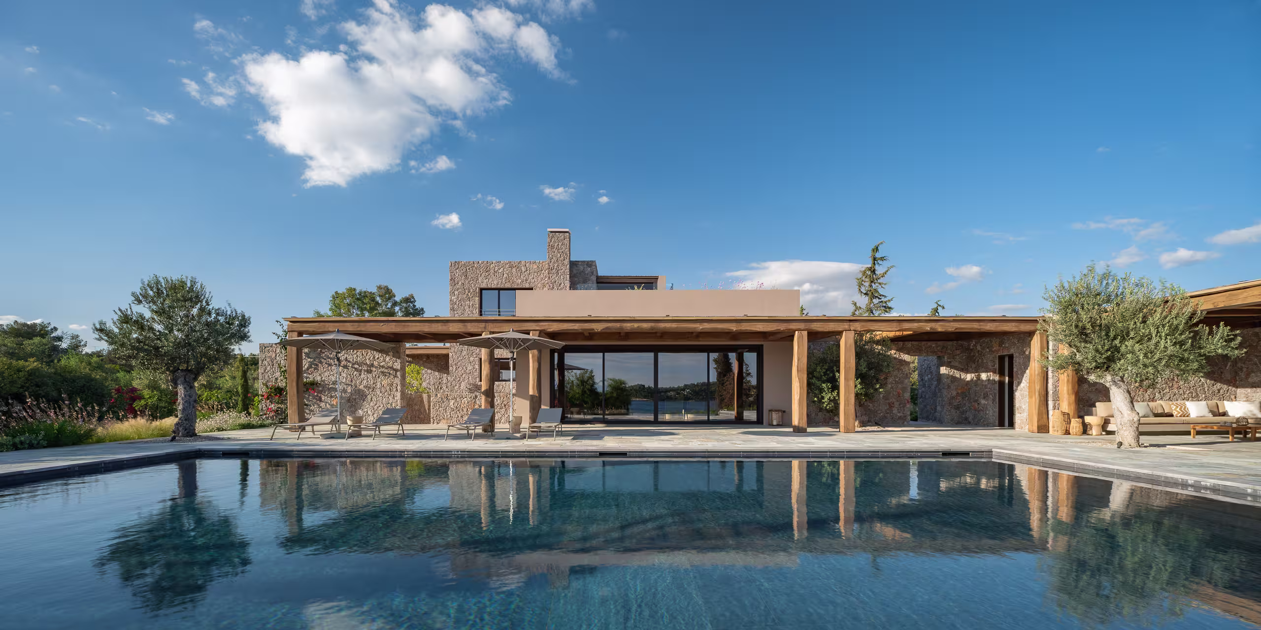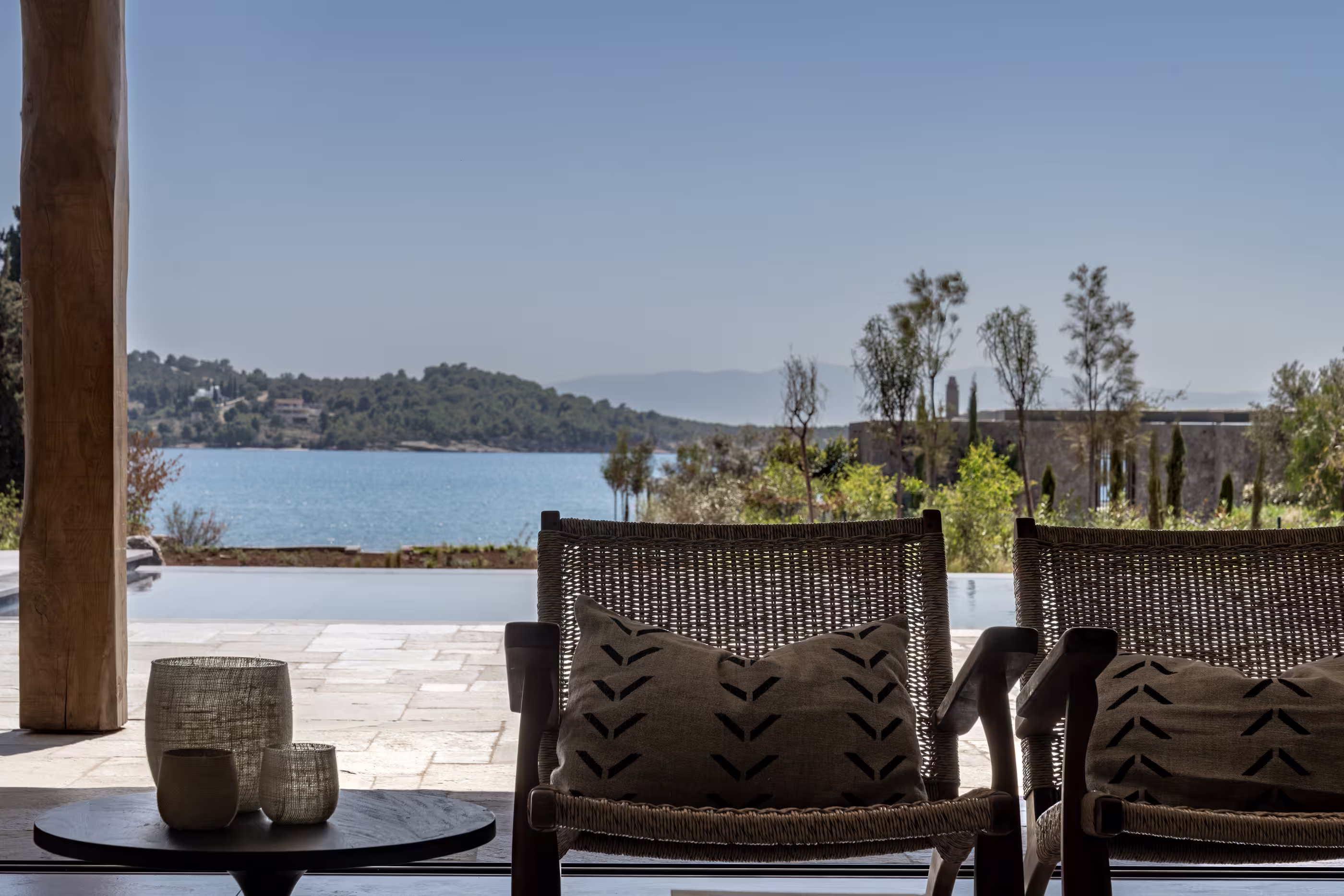 Nestled in Ververonda, just two minutes from Porto Heli, Villa Sunrise offers understated luxury in one of the region’s most sought-after coastal enclaves. Surrounded by olive trees and local flora, the villa blends natural materials with modern architecture to create a serene living environment. Spread across three levels and an independent suite, it features six bedrooms, expansive sea views, a tranquil swimming pool, and outdoor spaces designed for relaxed gatherings. From the shaded BBQ and dining area to the elevated master suite with jacuzzi, every detail invites connection with nature, comfort, and privacy. A quiet haven ideal for families or groups seeking laid-back sophistication on the Argolic Gulf.