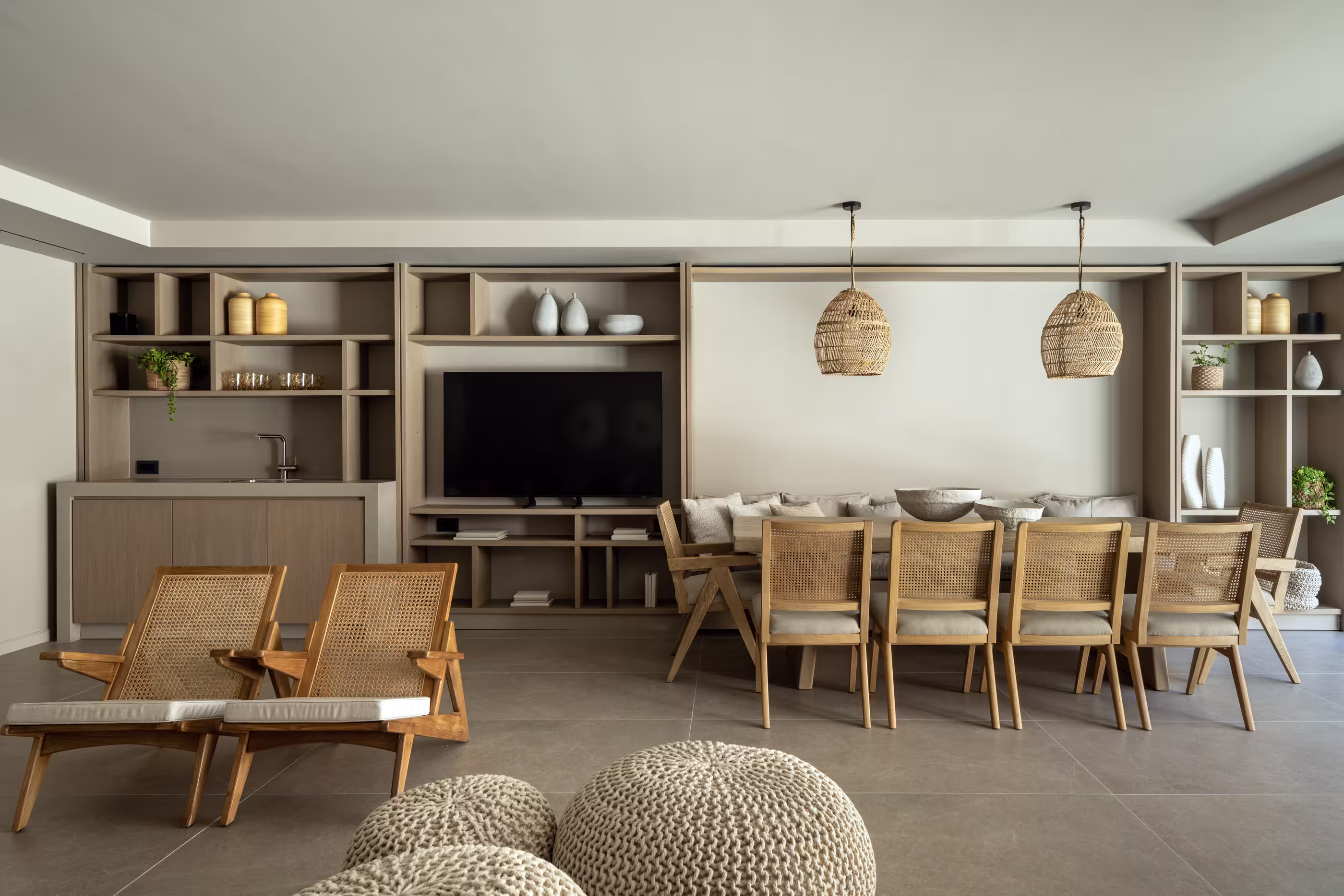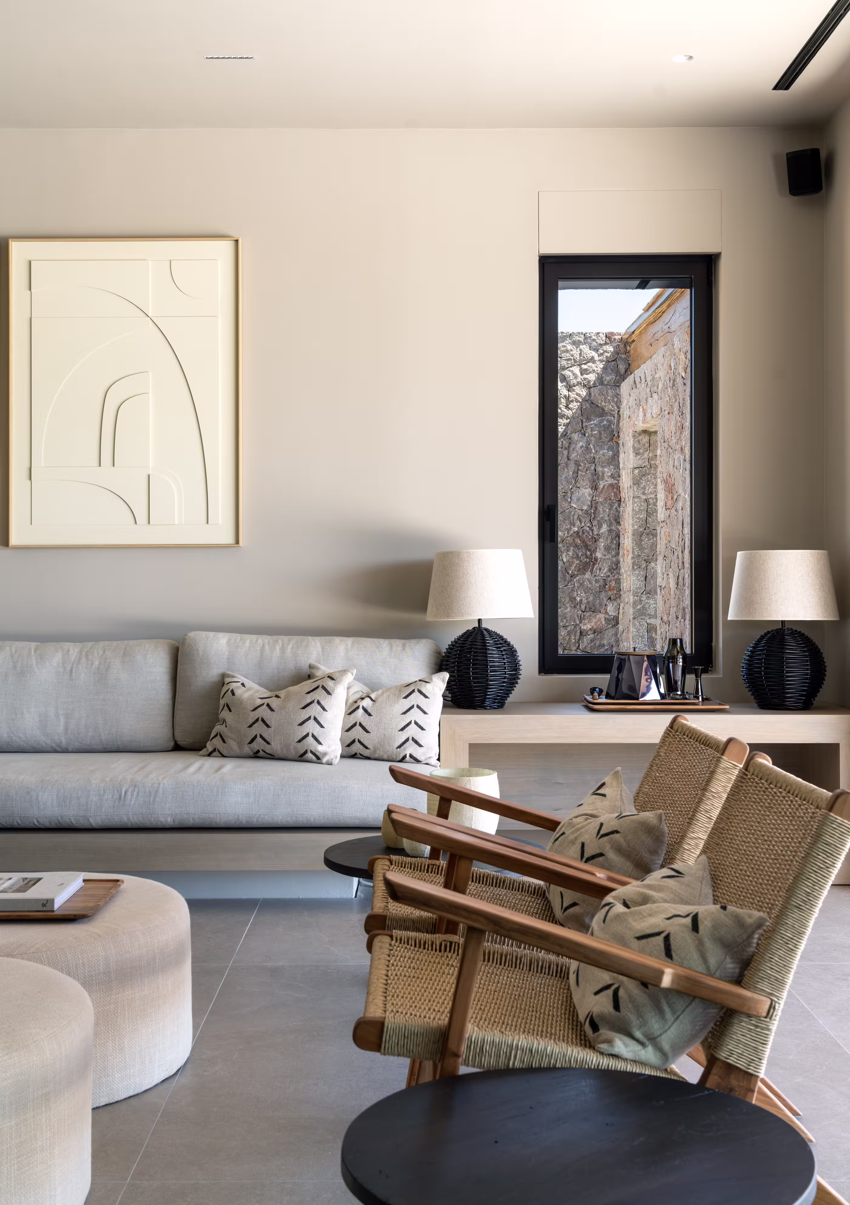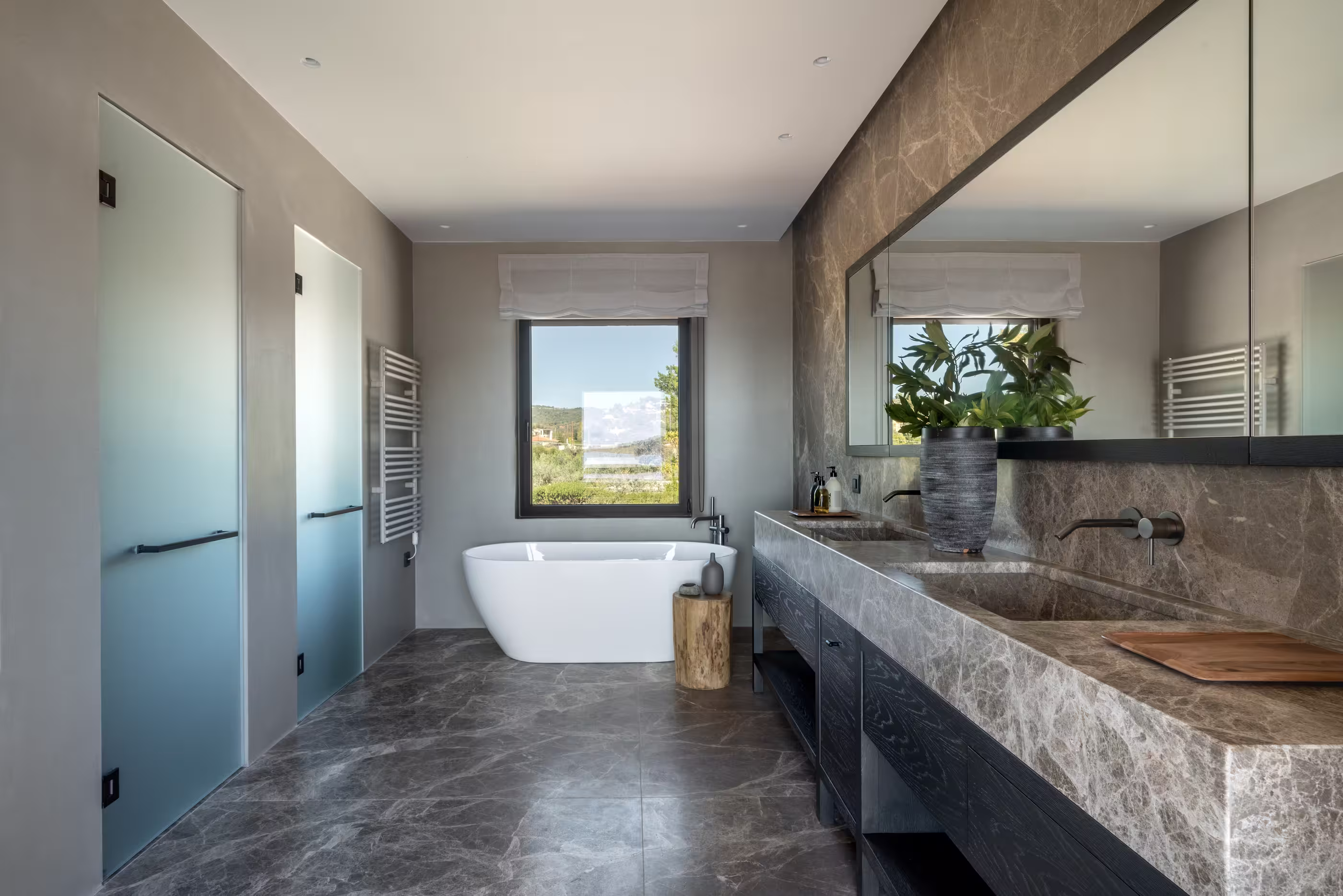 Nestled in Ververonda, just two minutes from Porto Heli, Villa Sunrise offers understated luxury in one of the region’s most sought-after coastal enclaves. Surrounded by olive trees and local flora, the villa blends natural materials with modern architecture to create a serene living environment. Spread across three levels and an independent suite, it features six bedrooms, expansive sea views, a tranquil swimming pool, and outdoor spaces designed for relaxed gatherings. From the shaded BBQ and dining area to the elevated master suite with jacuzzi, every detail invites connection with nature, comfort, and privacy. A quiet haven ideal for families or groups seeking laid-back sophistication on the Argolic Gulf.