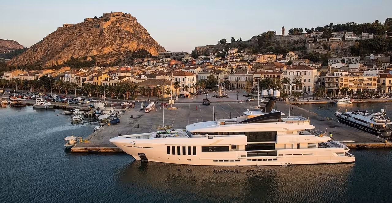 A contemporary, bold yacht with three levels, a Jacuzzi, sleek modern interiors, and the convenience of an onboard elevator for effortless luxury.